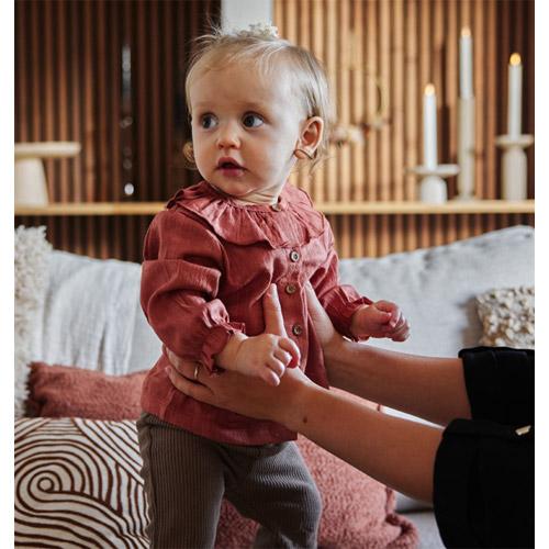Ce pantalon Dirkje marron côtelé pour fille possède des jambes larges tendance et une coupe confortable.