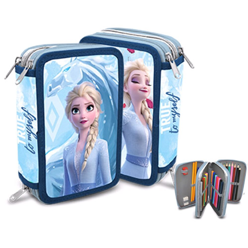 Étui à crayons 3 compartiments rempli de la Reine Des Neiges.