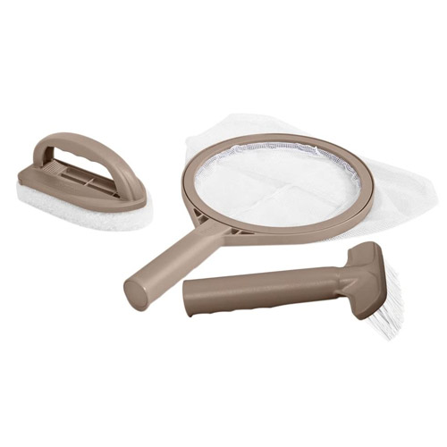 Ce kit inclut également un épuisette et un tampon à récurer pour vous aider à gader l'eau de votre spa propre et limpide.