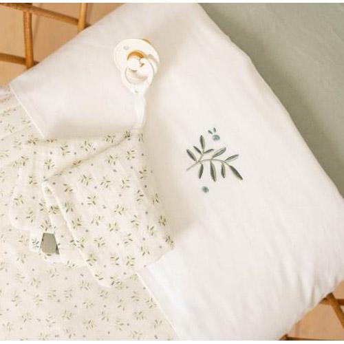La belle couleur Pure Sage apporte une sensation de fraîcheur naturelle et de tranquillité dans la chambre de votre enfant et sa marie en émerveillement avec le linge de lit Little Dutch.
