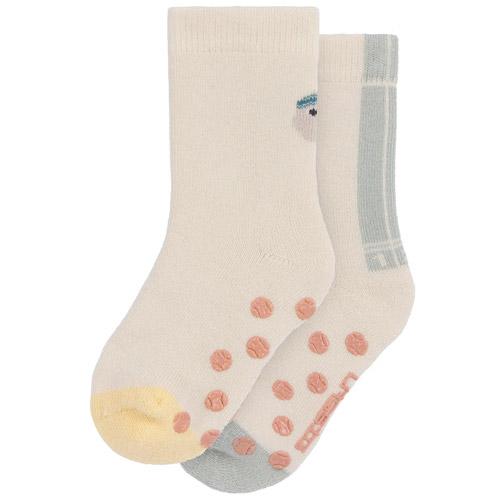 Les chaussettes antidérapentes LÄSSIG de la collection Tiny Team certificées GOTS, accompagnement le petits explorateurs lors de leurs premières découvertes grâce à leurs picots antidérapants en silicone.