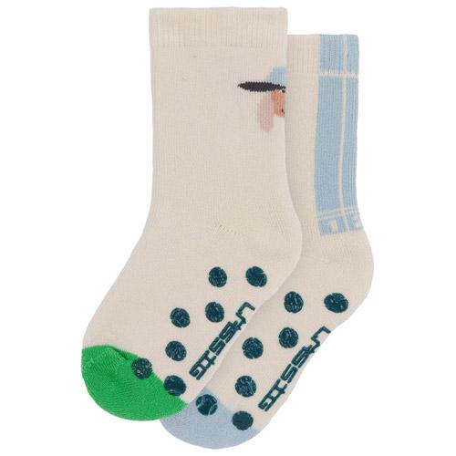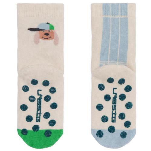 Les chaussettes antidérapentes LÄSSIG de la collection Tiny Team certificées GOTS, accompagnement le petits explorateurs lors de leurs premières découvertes grâce à leurs picots antidérapants en silicone.