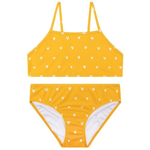 Les filles adorent ce magnifique bikini dans une douce couleur orange avec joli imprimé coeur.