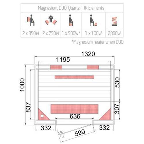 Infrarood cabine CHALEUR 132 cm x 100 cm x 200 cm