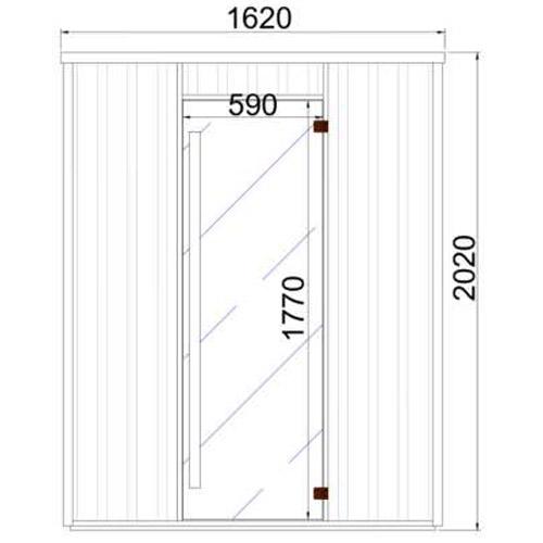 - Getinte veiligheidsglasdeur 1770 mm x 590 mm x 8 mm met bruine scharnieren en cederhouten handvat.