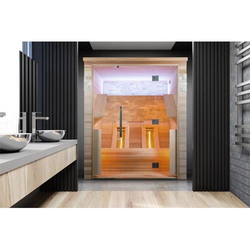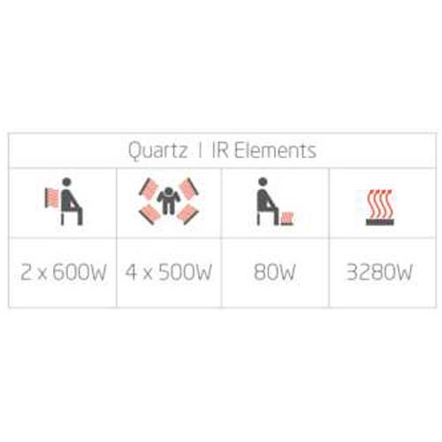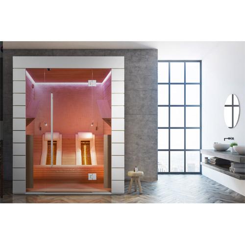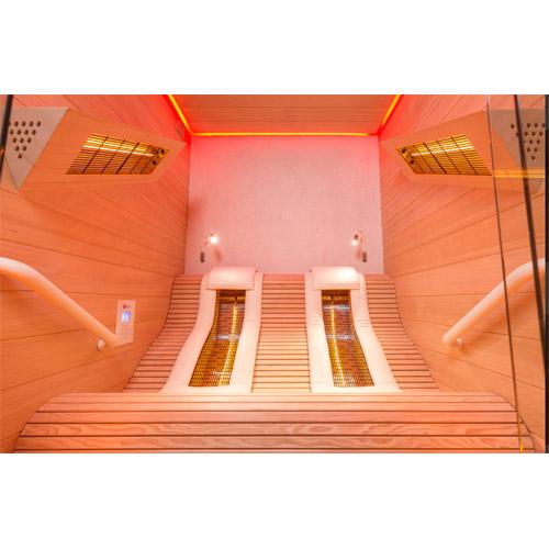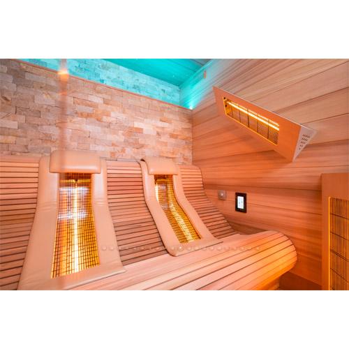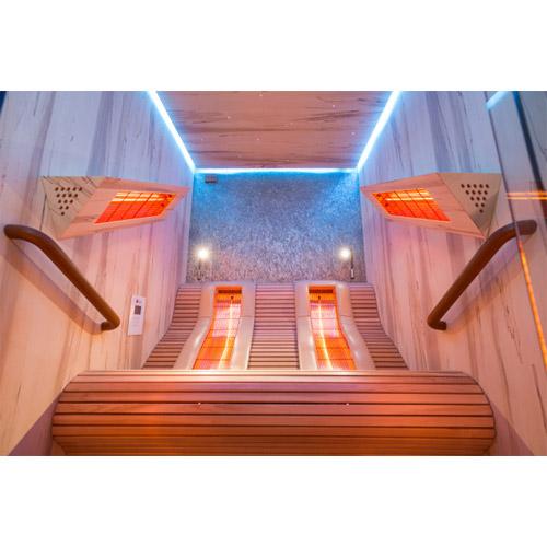 - Quartz stralers in de voorwand en zijwanden, ergonomisch gevormde Quartz stralers voor de rug, vloerverwarming.