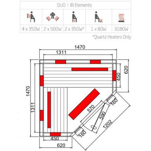 - Getinte veiligheidsglasfront met deur 1770 x 590 x 8 mm inclusief bruine scharnieren / red ceder handvat en 2 zijruiten in 8 mm gehard glas.