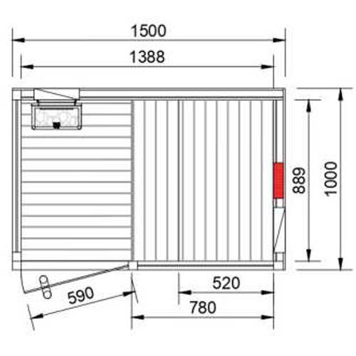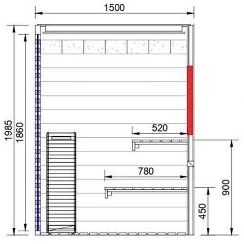 -Glazen voorwand en zijkant in helder gehard glas 8 mm dik, inclusief deur 1850 mm x 590 mm x 8 mm, handvat inox buiten en hout binnen.