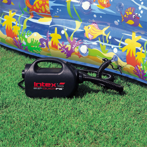 De snelle lucht pomp van Intex voor het opblazen van uw zwembad, ligzetels of allerlei speelgoed, eenvoudig aan te sluiten op alle Intex artikelen.