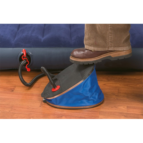 De giant bellows luchtpomp geeft 20% meer luchtstroom dan andere voetpompen, word geleverd met 3 aansluitstukken en een accordeonslang.
