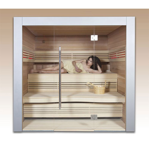 -Banken, rugsteunen, oven bescherming en loopvloer in ayous thermo hout.