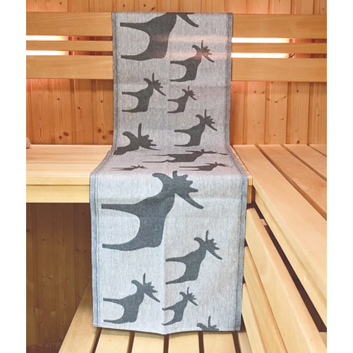 Met elandmotief, 45 x 160 cm linnen textiel voor sauna en bad.