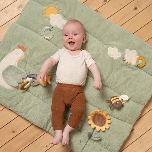 Dit gewatteerde boxkleed uit de Little Farm collectie stimuleert door de verschillende texturen en activiteiten de zintuigen van je kindje.