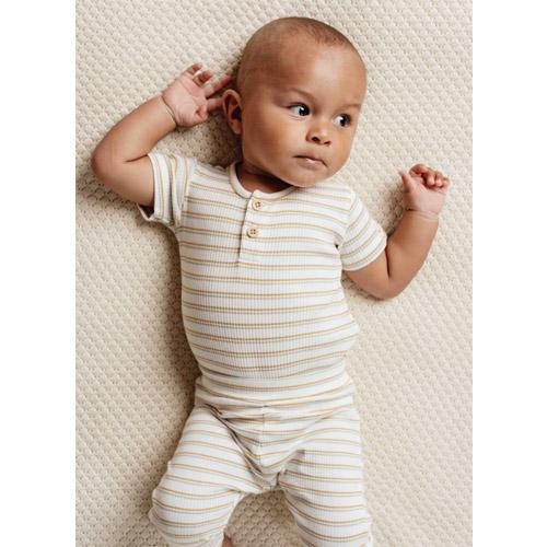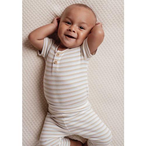 Gemaakt van biologisch katoen met een geribbelde structuur, met een gestreept patroon in meerdere kleuren, waardoor het perfect te combineren is met andere items.