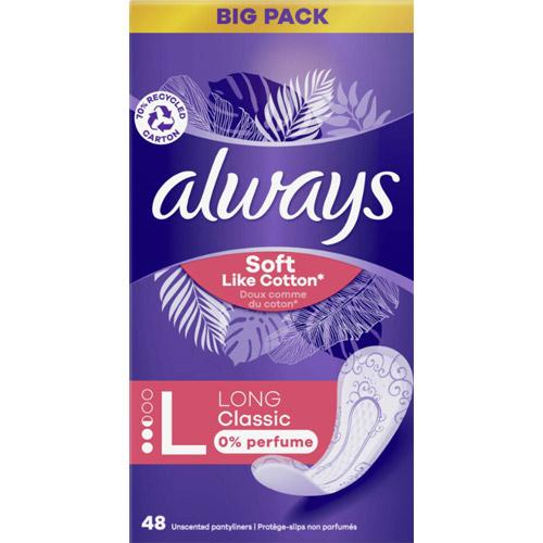 Inlegkruisjes Always Long classic 0% parfum 48 stuks OP=OP