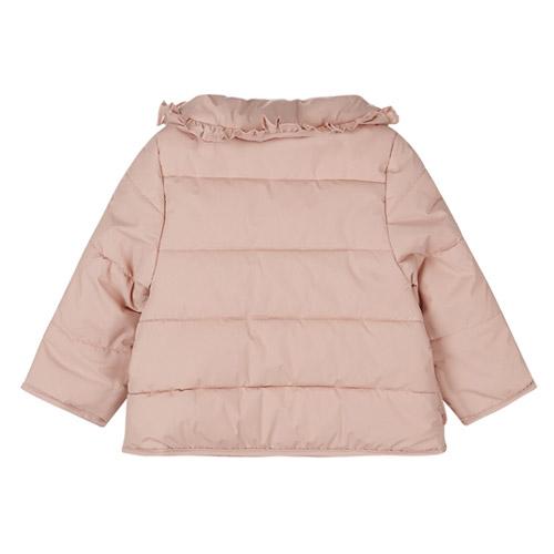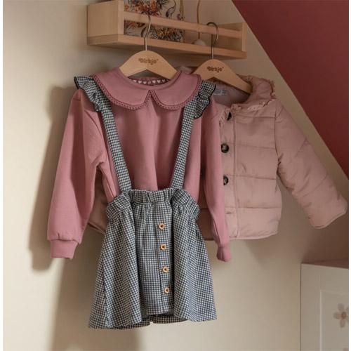De zachtroze kleur geeft een vrolijke uitstraling, terwijl de kraag met ruffles een speelse touch toevoegt.