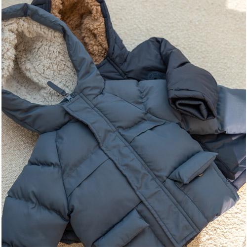 Met capuchon voorzien van zachte teddy voering en een waterafstotende buitenkant blijft je kleintje warm en droog.