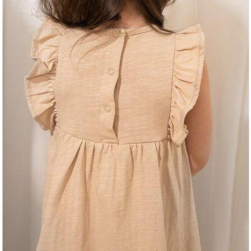 Dit beige jersey jurkje met slubstructuur is gemaakt van zacht biologisch katoen en is heerlijk om te dragen op warme dagen.