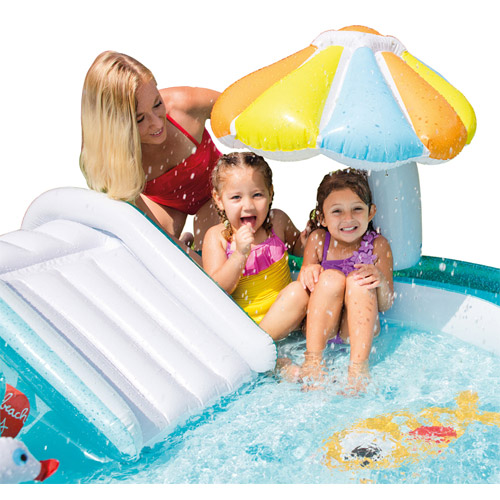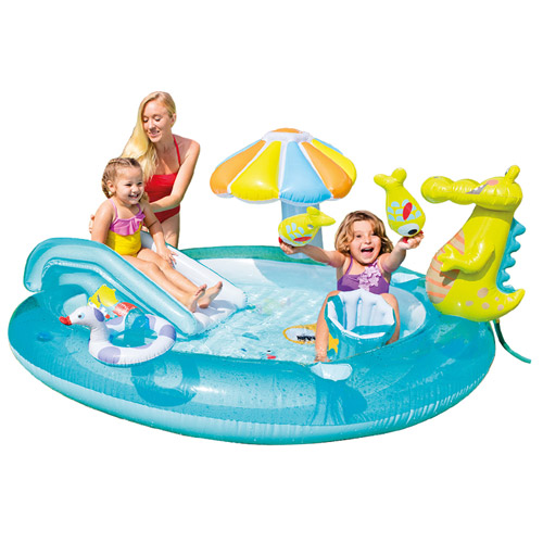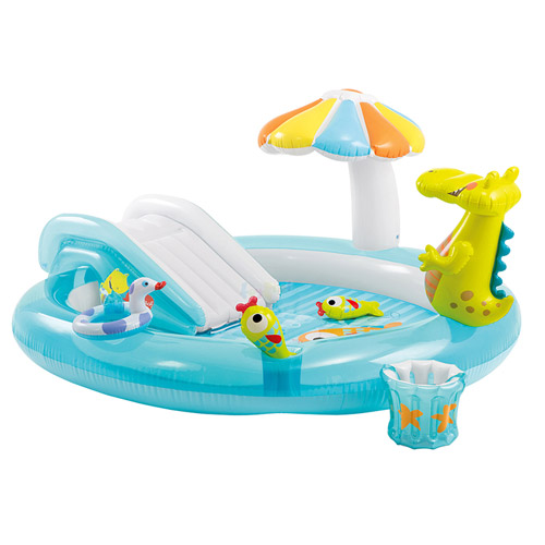 Spelen in de tuin is leuk en plezant in dit Krokodil speelcenter zwembad met speelgoed toebehoren.