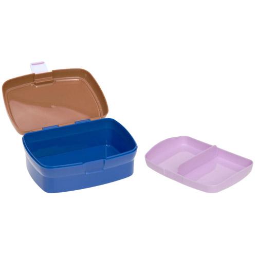 De tweekleurige lunchbox is voorzien van een uitneembaar bakje voor het organiseren van de lunchbox en diverse snacks.