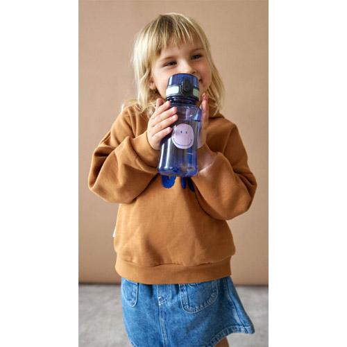 De bijpassende BPA-vrije en breukvaste kinderdrinkfles van 100% Tritan heeft een lekvrije deksel met veiligheidssluiting, zodat hij ook in een rugzak veilig gesloten blijft.