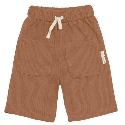 De stijlvolle Waffle kindershorts van lâssig in de kleur caramel maken van de kinderoutfit een echte blikvanger.
