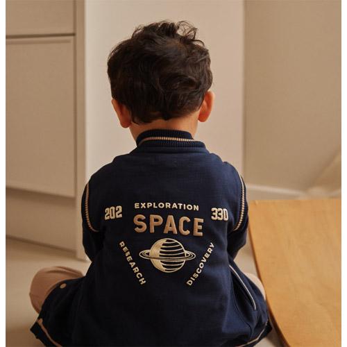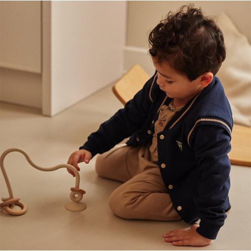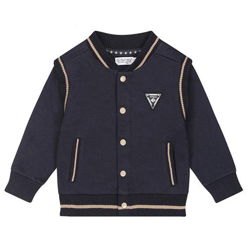 Dit stoere Dirkje baseball vestje in donkerblauw met taupekleurige details is perfect voor frisse dagen.