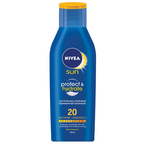 Deze zonnemelk van Nivea heeft een verzorgende formule die de barrière van de huid beschermt tegen schadelijke effecten van de zon en vroegtijdige huidveroudering.