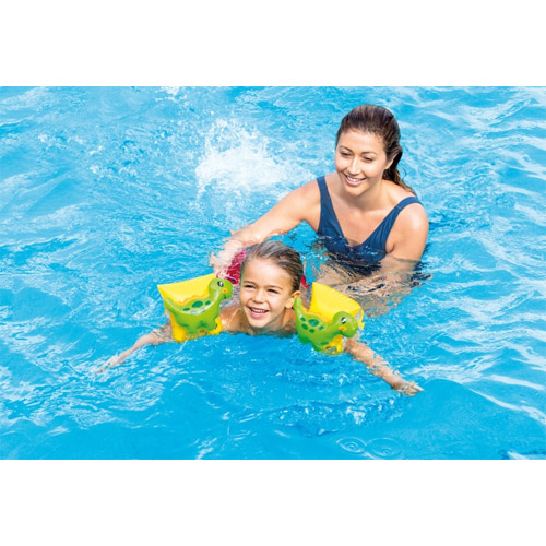 Deze dinosaurus zwembandjes van Intex zorgen ervoor dat uw kind veilig kan leren zwemmen of spelen in het zwembad.