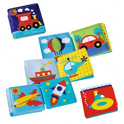 Het ABC mijn eerste boek toont kleurrijke illustraties op acht pagina's van transportmiddelen en vervoermiddelen in de lucht, op het water en op het land.