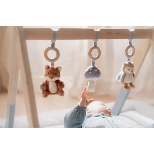 Er zijn drie verschillende activiteitenspeeltjes die voor het vermaak zorgen: een lief vosje, de wijze uil en een paddenstoel.