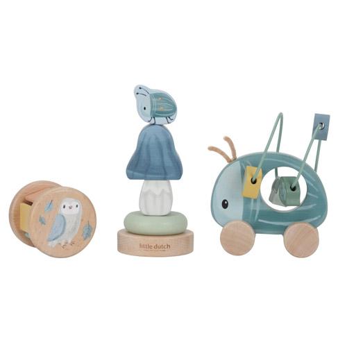Drie leuke houten items van Little Dutch ontworpen voor die kostbare eerste momenten van spelen en ontwikkelen.
