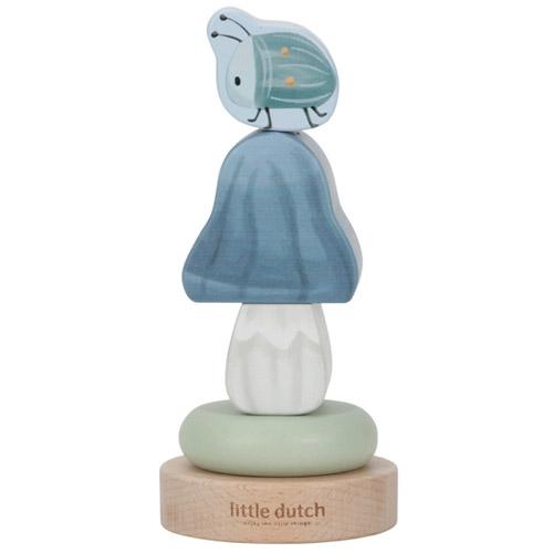 Een prachtige stapelaar om blokjes op de stapelen tot een grote paddenstoel met een lieve kever er bovenop.