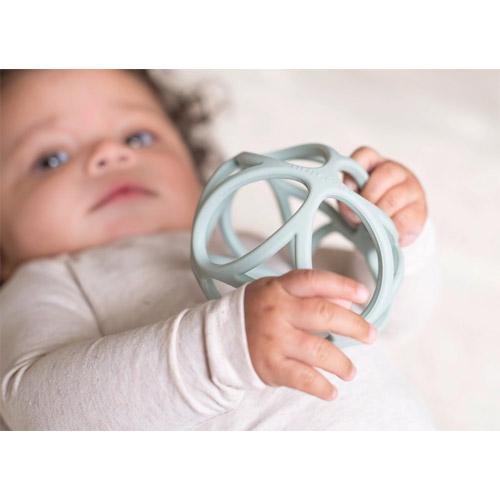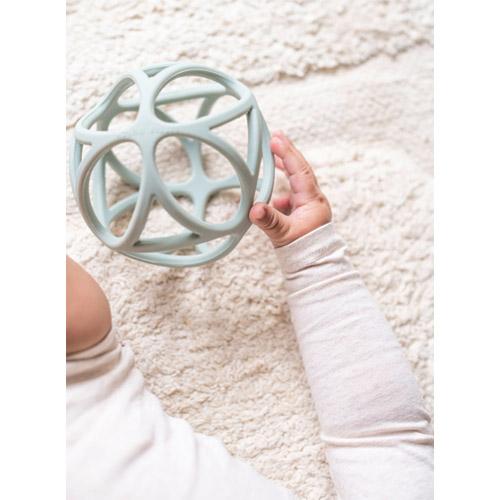 De bal stimuleert al spelend de zintuigen van je baby door te voelen, knijpen, sabbelen en de bal te laten rollen.