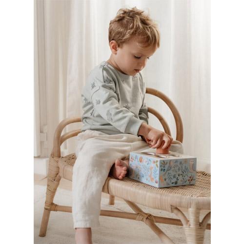 De stoof is gemaakt van stevig hout en versierd met de illustraties van een schattig Forest Friends tafereel.