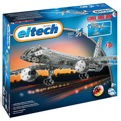 Met meer dan 570 onderdelen in deze klassieke Eitech bouwdoos bouw je zelf een prachtig vliegtuig om mee te spelen of op de standaard te zetten voor decoratie.
