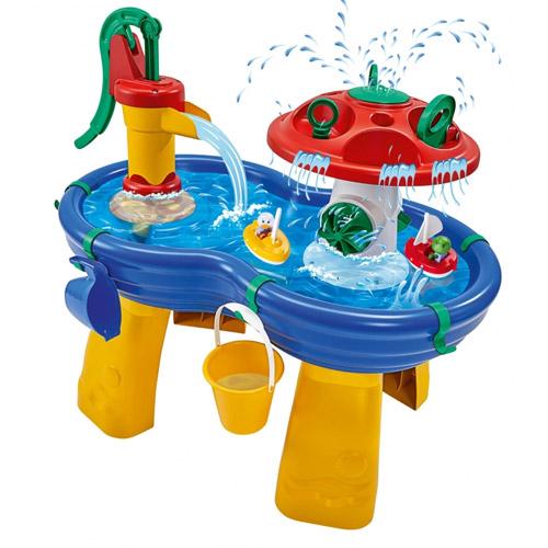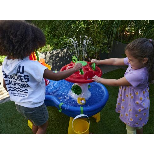 De tafel in leuk ontwerp heeft een paddenstoel met een waterval- en splashfunctie.