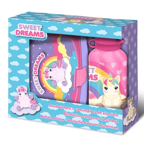Sweet Dreams Unicorn lunchset, deze set bestaat uit een broodtrommel en drinkfles.