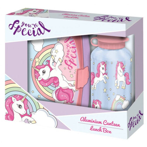 Lunchtijd wordt nog leuker met deze supermooie Unicorn broodtrommel en drinkfles.