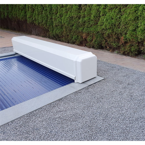 Aquadeck rolluik opbouw met beschermkap Polycarbonaat graphite solar 11 m x 5,5 m