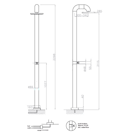 De vrijstaande buitendouche van Jee-O Fatline Push combineren de volgende elementen met elkaar duurzaam ontwerp met luxe en functionaliteit.