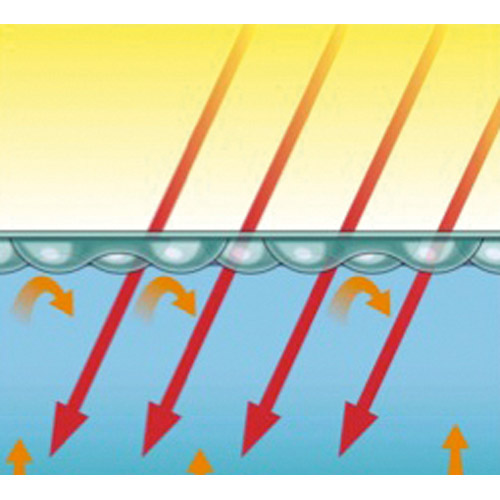 Zomerafdekking Sol + Guard Geobbuble gaat uw zwembad enkele graden gratis bijwarmen door de combinatie warmte afgifte van de zon en de noppenfolie.